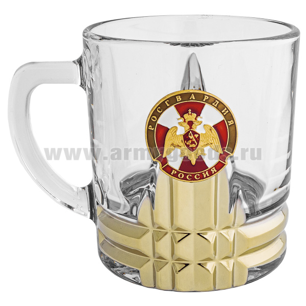 Кружка стекло (0,25 л) с металлизированным напылением и мет накладкой Росгвардия