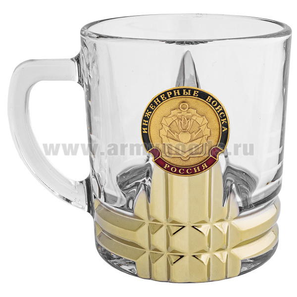 Кружка стекло (0,25 л) с металлизированным напылением и мет накладкой Инженерные войска