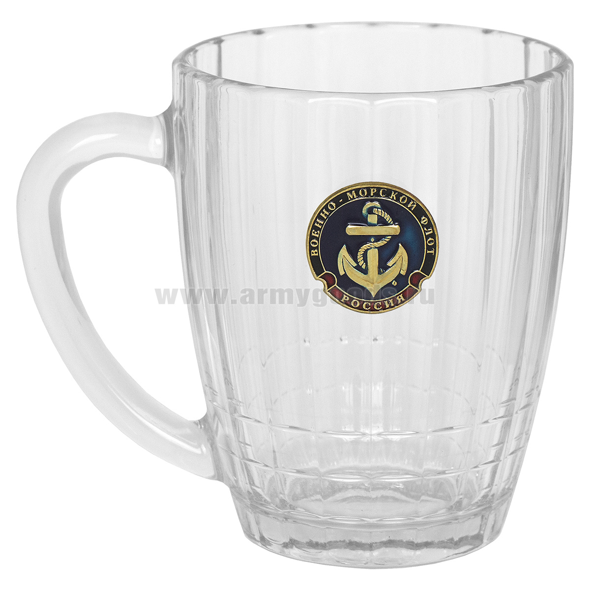 Кружка пивная стеклянная с мет. накладкой ВМФ (0,5 л)