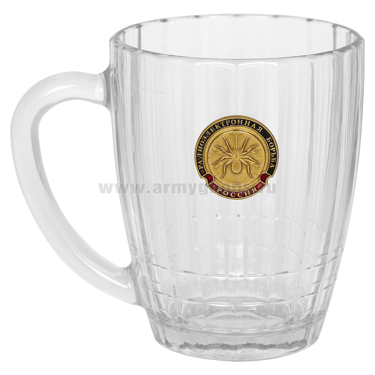 Кружка пивная стеклянная с мет. накладкой РЭБ (0,5 л)