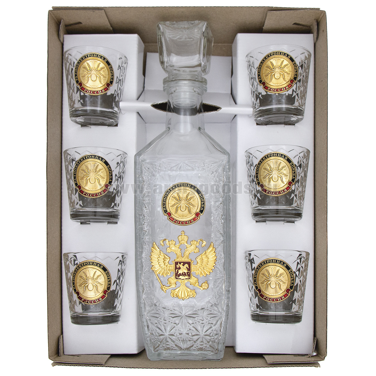 Набор подарочный стеклянный Штоф (0,5 л) и 6 стопок (50 мл) с мет. накладками РЭБ (паук)