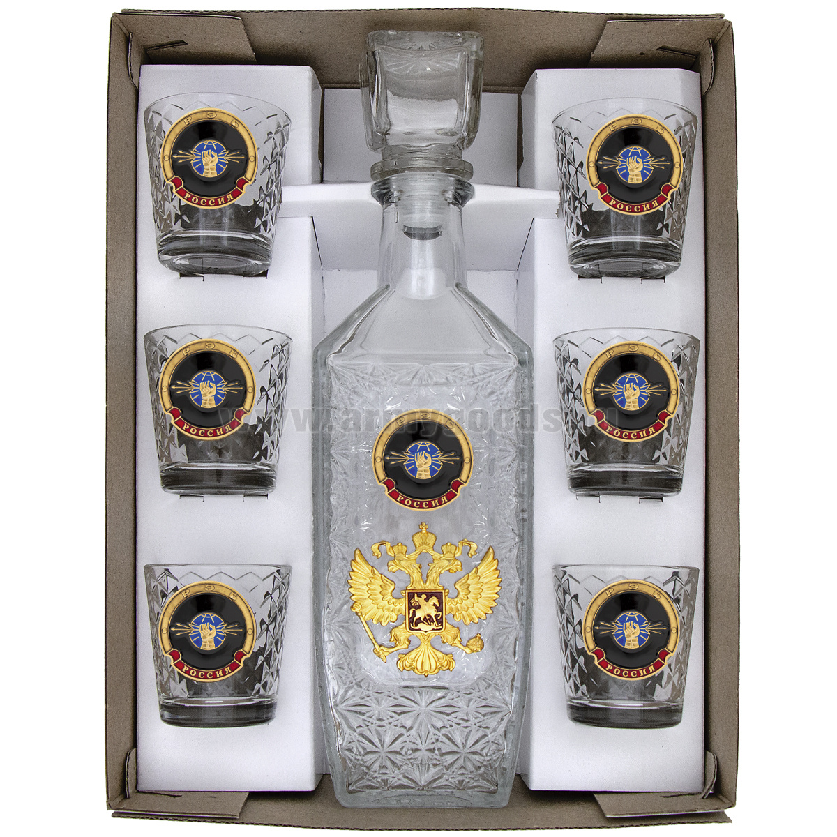 Набор подарочный стеклянный Штоф (0,5 л) и 6 стопок (50 мл) с мет. накладками РЭБ (эмблема)