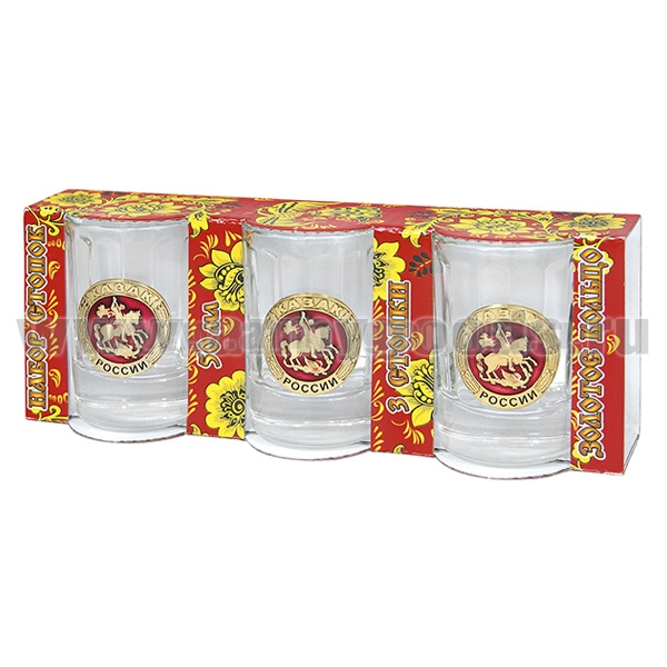 Стопки стеклянные (3x50 мл) с накладками Казак России
