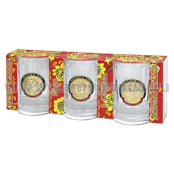 Стопки стеклянные (3x50 мл) с накладками РВиА