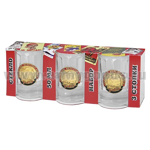 Стопки стеклянные (3x50 мл) с накладками РЖД