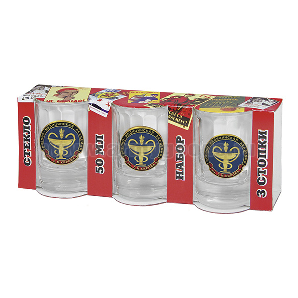 Стопки стеклянные (3x50 мл) с накладками Военно-медицинская академия имени С. М. Кирова