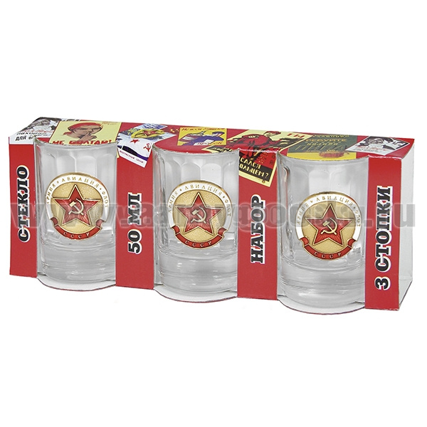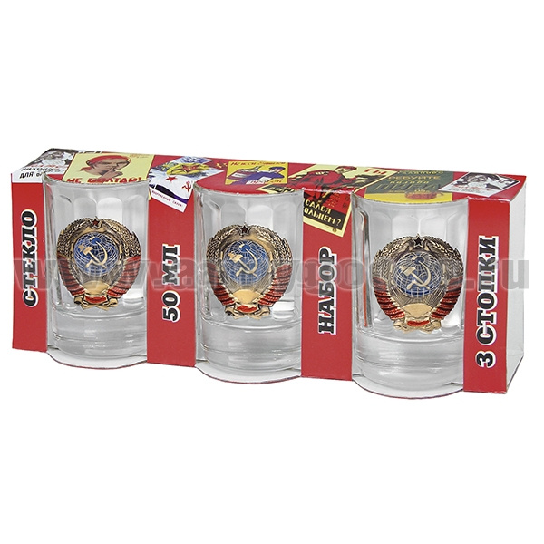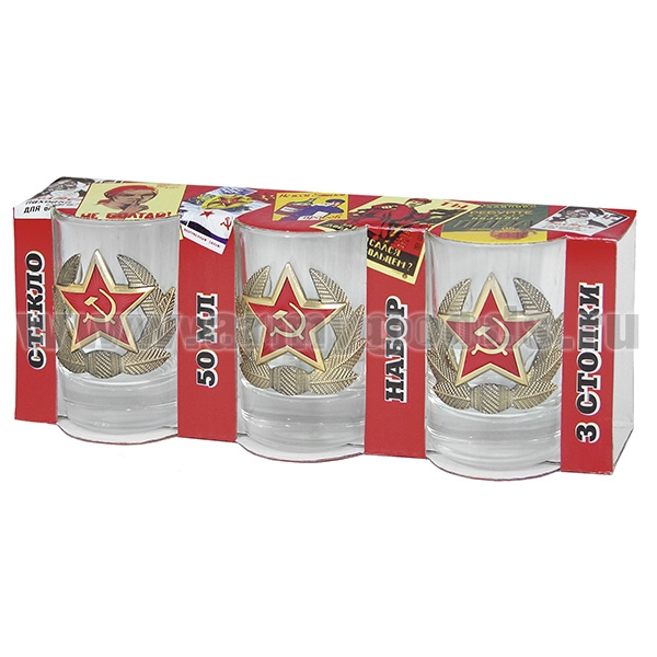 Стопки стеклянные (3x50 мл) с накладками (кокарды СССР р/с)