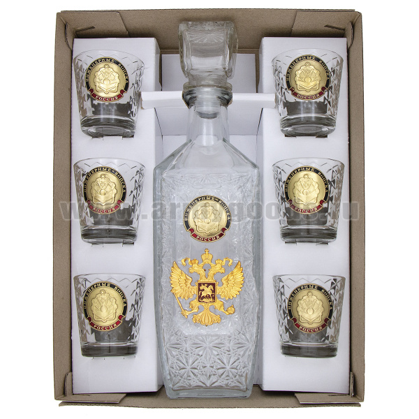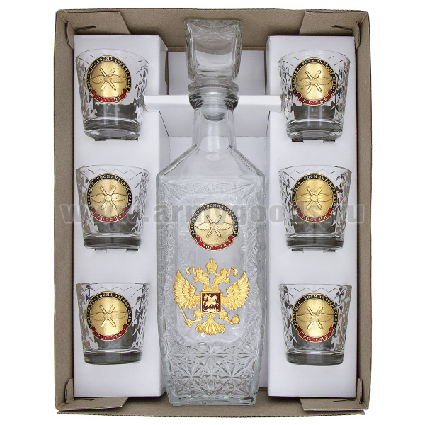 Набор подарочный стеклянный Штоф (0,5 л) и 6 стопок (50 мл) с мет. накладками ВДВ нов/обр