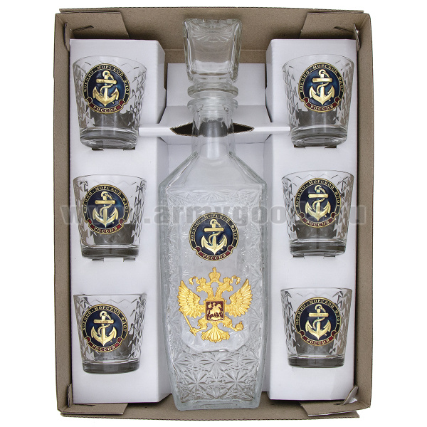Набор подарочный стеклянный Штоф (0,5 л) и 6 стопок (50 мл) с мет. накладками ВМФ