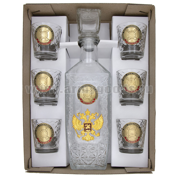 Набор подарочный стеклянный Штоф (0,5 л) и 6 стопок (50 мл) с мет. накладками Инженерные войска
