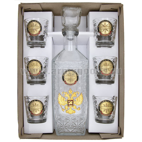 Набор подарочный стеклянный Штоф (0,5 л) и 6 стопок (50 мл) с мет. накладками Воздушно-космические силы