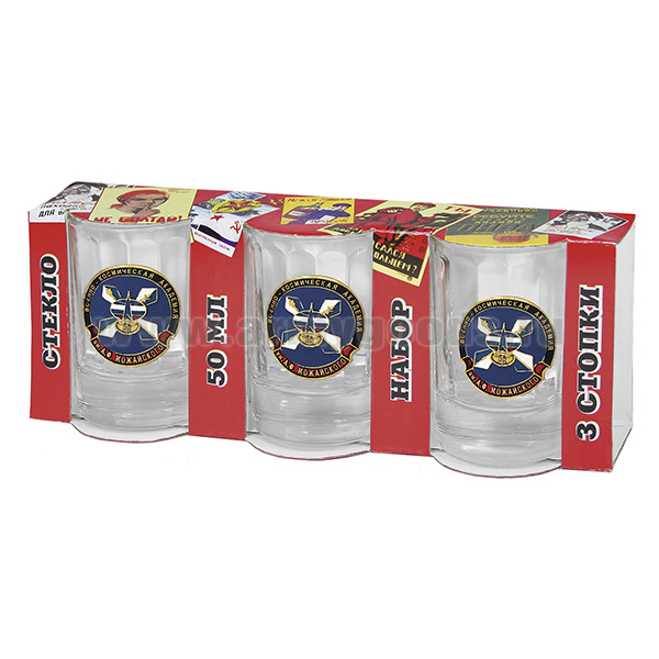 Стопки стеклянные (3x50 мл) с накладками Военно-космическая академия имени А.Ф. Можайского