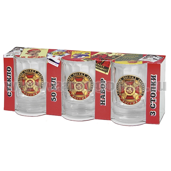 Стопки стеклянные (3x50 мл) с накладками (Участник боевых действий)