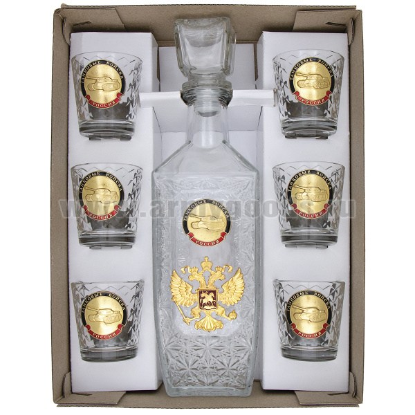 Набор подарочный стеклянный Штоф (0,5 л) и 6 стопок (50 мл) с мет. накладками Танковые войска