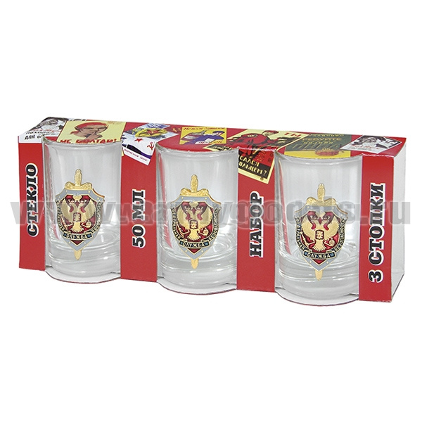 Стопки стеклянные (3x50 мл) с накладками Федеральная служба безопасности (щит и меч)