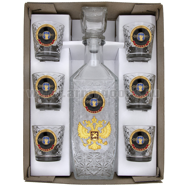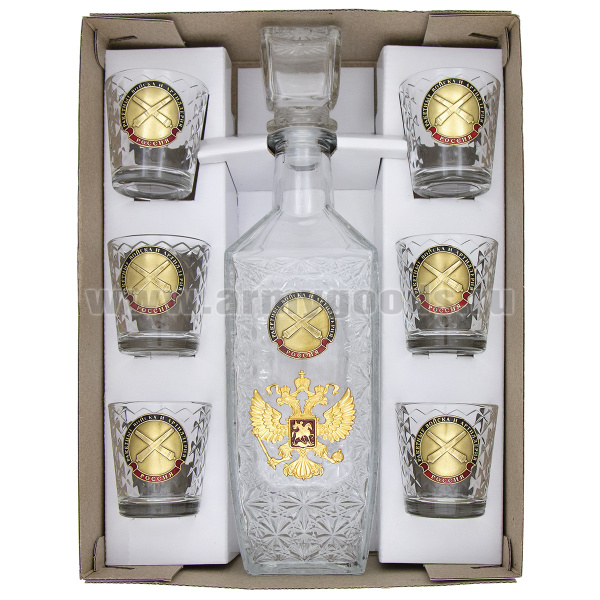 Набор подарочный стеклянный Штоф (0,5 л) и 6 стопок (50 мл) с мет. накладками РВиА
