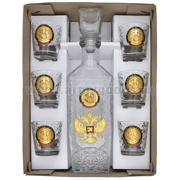 Набор подарочный стеклянный Штоф (0,5 л) и 6 стопок (50 мл) с мет. накладками Звезда СА (армия, авиация, флот)