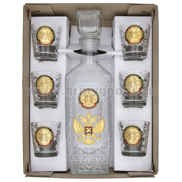 Набор подарочный стеклянный Штоф (0,5 л) и 6 стопок (50 мл) с мет. накладками РЭБ (эмблема)