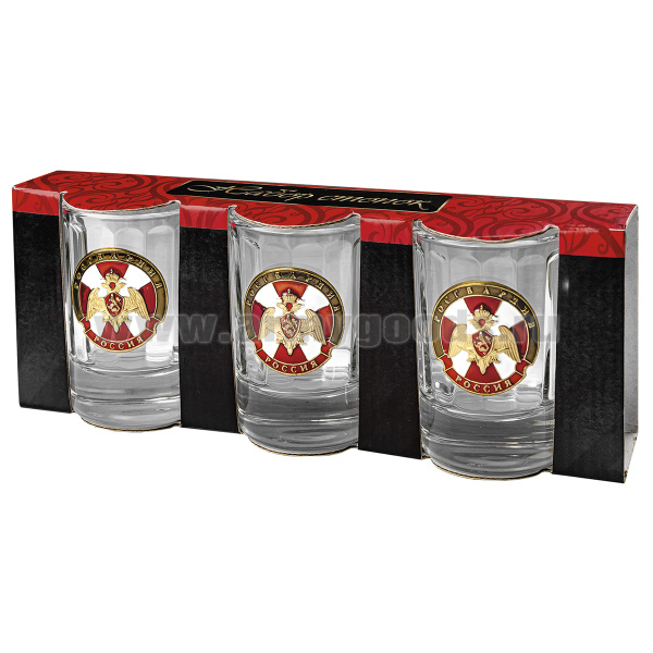 Стопки стеклянные (3x50 мл) с накладками Росгвардия