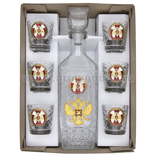 Набор подарочный стеклянный Штоф (0,5 л) и 6 стопок (50 мл) с мет. накладками Росгвардия