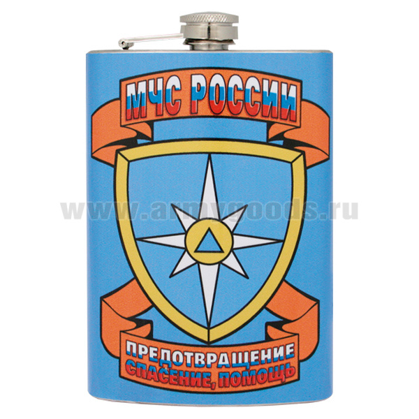 Фляга нерж/ст с цв.рис. МЧС России / Предотвращение Спасение, Помощь (пожарный с девочкой)