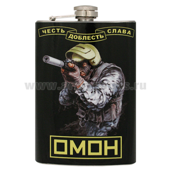 Фляга нерж/ст с цв.рис. ОМОН (честь, доблесть, слава)
