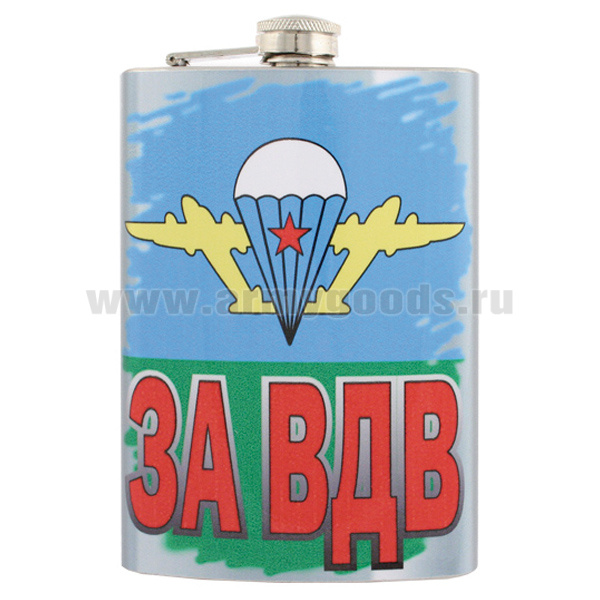 Фляга нерж/ст с цв.рис. За ВДВ / Никто кроме нас! (эмблема, надписи, десантники)