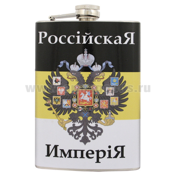 Фляга нерж/ст с цв.рис. Российская Империя / Родись на Руси Живи на Руси Умри за Русь