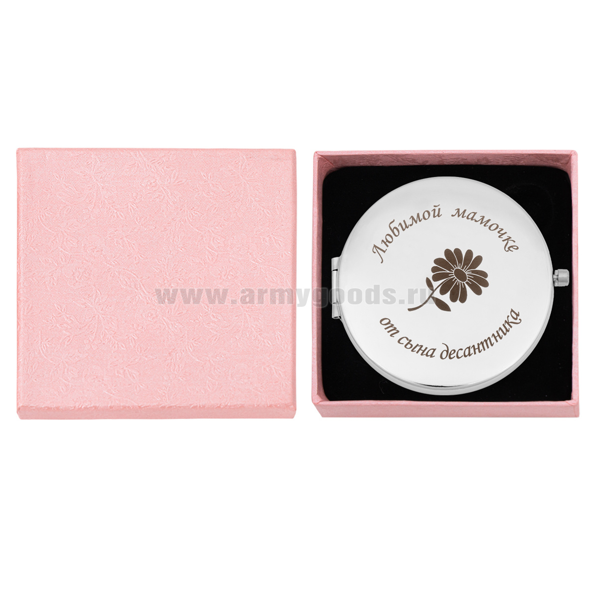 Зеркало карманное с лазерной гравировкой Любимой мамочке от сына десантника