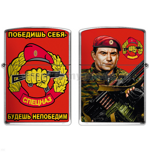 Зажигалка бензиновая цветная Спецназ (Победишь себя - будешь непобедим)