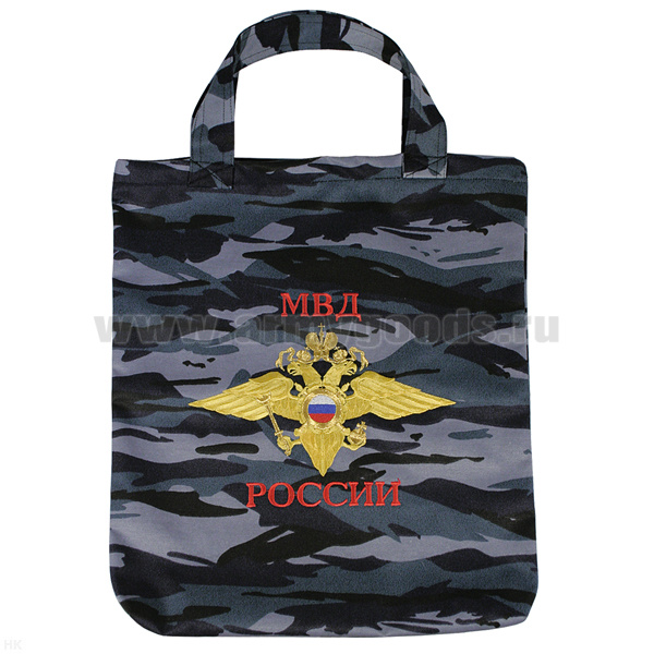 Сумка хозяйственная вышитая МВД России (серый "камыш")