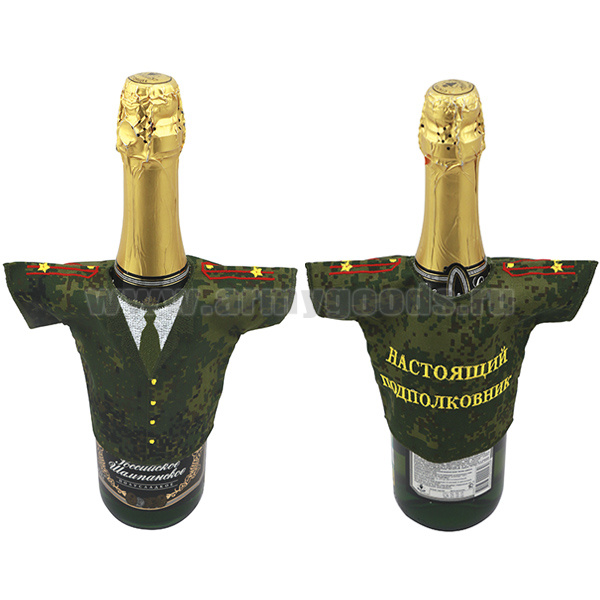 Рубашечка на бутылку сувенирная вышитая Настоящий подполковник ("русская цифра")