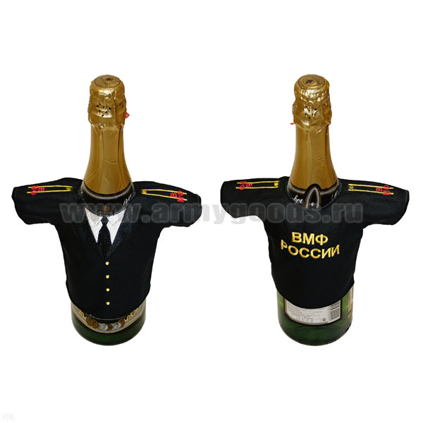 Рубашечка на бутылку сувенирная вышитая ВМФ России (черная с буквами ВМФ на погонах)