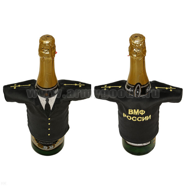 Рубашечка на бутылку сувенирная вышитая ВМФ России (черная с погонами ст. лейтенанта)