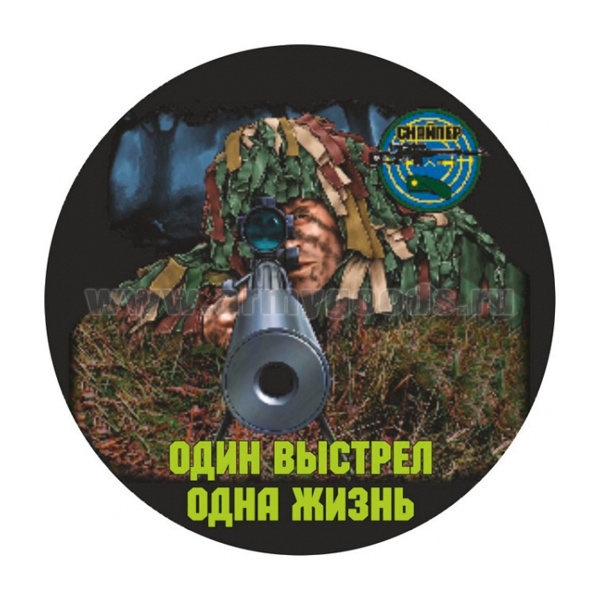 -Наклейка круглая (d=10 см) Один выстрел - одна жизнь