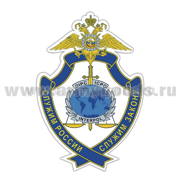 Наклейка в виде щита Служим России Служим закону (INTERPOL)