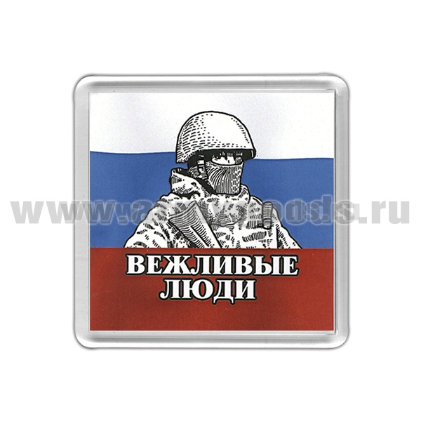 Магнит пластик Вежливые люди (боец на фоне триколора)