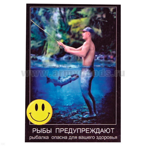 Магнит виниловый (гибкий) со смайликом РЫБЫ ПРЕДУПРЕЖДАЮТ рыбалка опасна для вашего здоровья