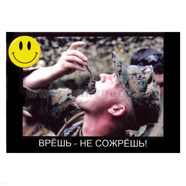 Магнит виниловый (гибкий) со смайликом Не так страшна война, как русские солдаты!!!