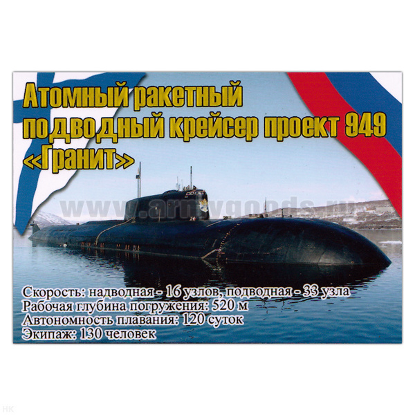 Магнит виниловый (гибкий) Атомный ракетный подводный крейсер проект 949 Гранит