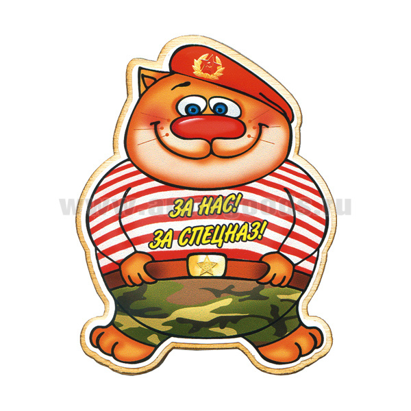 Магнит деревянный Кот в тельняшке (За нас! За спецназ!)
