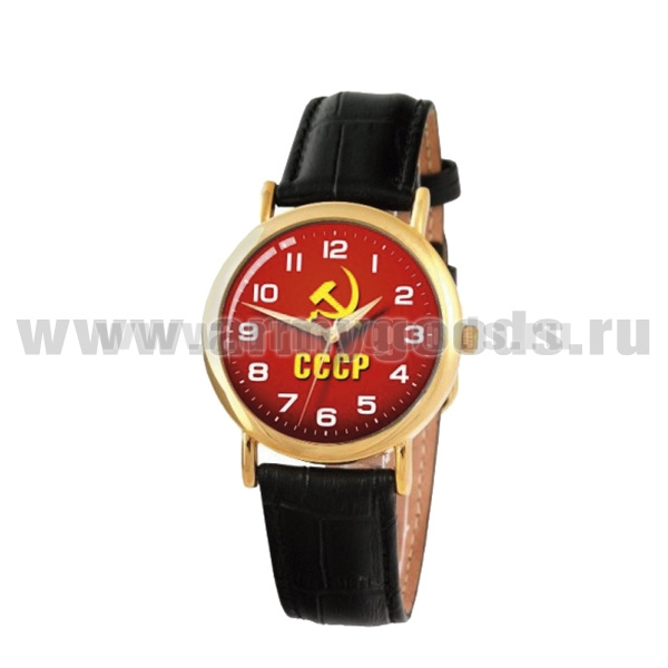 Часы наручные кварцевые "Слава" Герб СССР (цвета циферблата и ремешка в ассортименте)