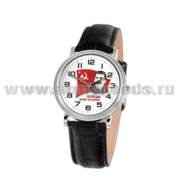 Часы наручные кварцевые "Слава" Победа будет за нами! (Сталин) (цвета циферблата и ремешка в ассортименте)
