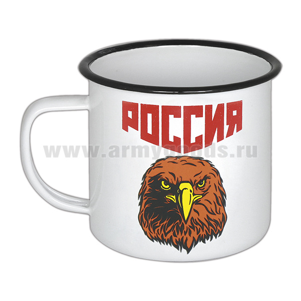 Кружка эмалированная 0,5 л с рис. (деколь) Россия (орел)