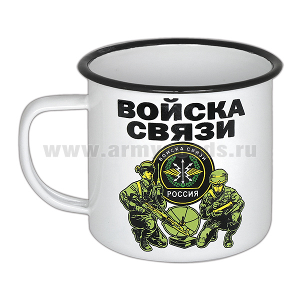 Кружка эмалированная 0,5 л с рис. (деколь) Войска связи (два связиста)