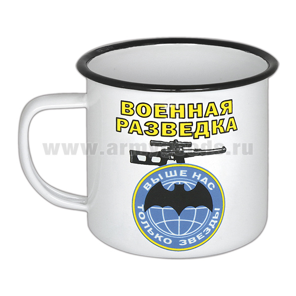 Кружка эмалированная 0,5 л с рис. (деколь) Военная разведка Выше нас только звезды (шеврон)