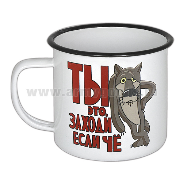 Кружка эмалированная 0,5 л с рис. (деколь) Ты это, заходи если чё...(волк)