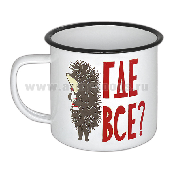 Кружка эмалированная 0,5 л с рис. (деколь) Где все? (ежик)