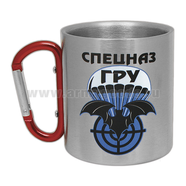 Кружка с ручкой-карабином Спецназ ГРУ (лет. мышь, парашют)