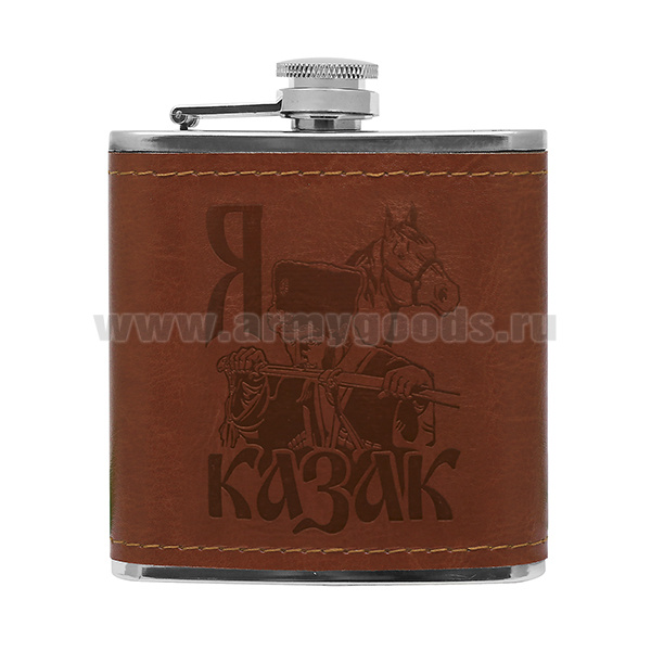Фляга (нерж. сталь) с тиснением на коже Я казак (6 oz (180 мл)